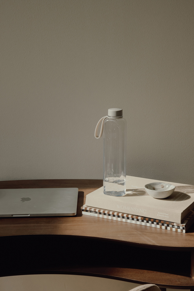 Stylish water bottle with a practical handle. Perfect for any occasion, whether at the office or the gym. The bottle features a unique, slim and flat design that not only gives it a modern and elegant look, but also makes it easy to slip into bags and backpacks without taking up unnecessary space. Made from recycled PET material and holds 550 ml. For cold drinks only.Certified by RCS (Recycled Claim Standard), RCS certification guarantees that the entire supply chain of recycled materials is certified. The total recycled content is based on the overall product weight. This product contains 85% RCS certified recycled PET.