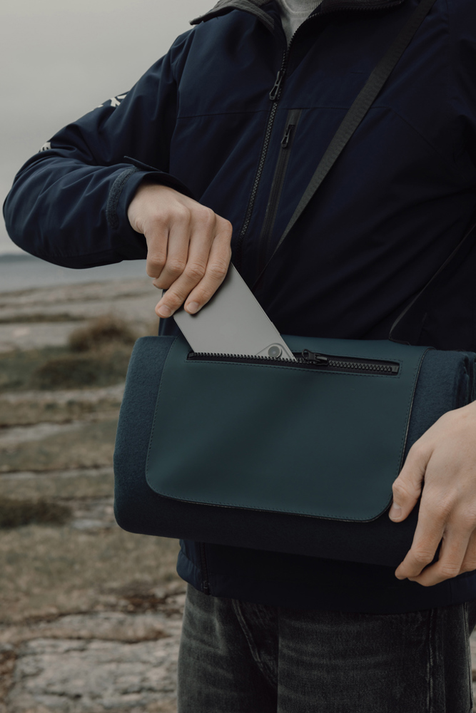 Head outdoors and bring the Baltimore picnic blanket with you. The blanket features a soft fleece surface for maximum comfort and a water-resistant PEVA backing that protects against moisture and cold. Equipped with a long handle for easy and comfortable carrying and a practical front zip pocket for keys, phone or other essentials. Certified by RCS (Recycled Claim Standard), RCS certification guarantees that the entire supply chain of recycled materials is certified. The total recycled content is based on the overall product weight. This product contains 47% RCS certified recycled polyester.