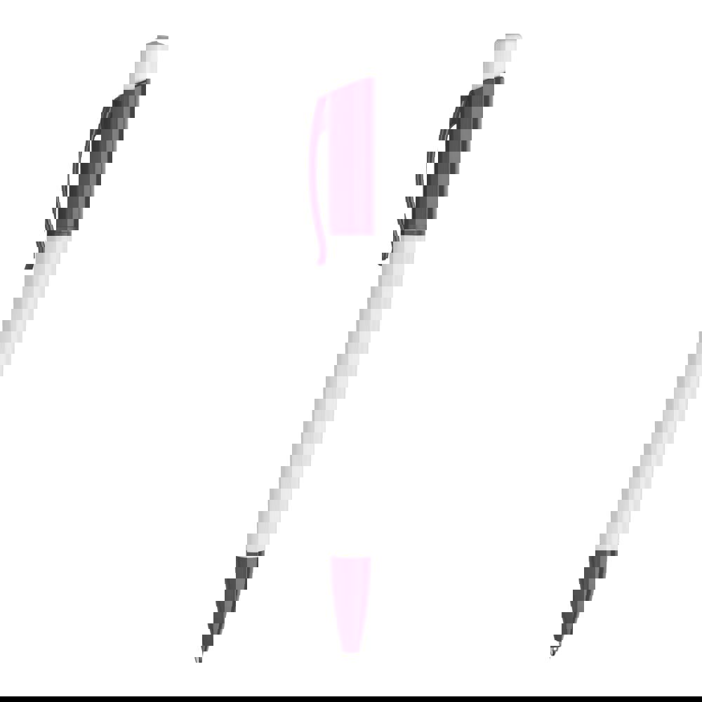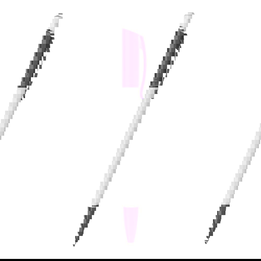 The Kamal ball pen in hardcolour has a large imprint space on both, clip, and barrel. With a combination of a white barrel and pusher and a coloured clip. Includes a pusher mechanism and a blue writing X20 refill. The pen is made of ABS plastic and is made in Europe.