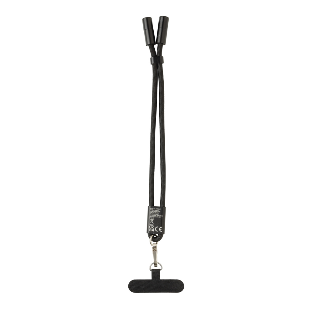 Introducing LoopAmp, a phone cord made out of RCS certified RPET. RCS (Recycled Claim Standard) is a standard to verify the recycled content of a product throughout the whole supply chain. Total recycled content: 78% based on total item weight. Crafted as a premium-quality wrist strap, its high-strength lanyard wraps comfortably around your wrist, and the precision-crafted connecting ring and hook guard against accidental drops—ideal for hands-free convenience during your daily commute, workouts, or quick errands. LoopAmp also doubles as a USB-C charging cable with up to 60 W of fast-charge power. Effortlessly top up your smartphone, tablet, or even a laptop with industry-leading efficiency, thanks to reinforced connectors and ultra-durable materials designed for reliable daily performance. Enjoy the perfect blend of safety, freedom, and high-performance charging with LoopAmp. Support Data transfer. PVC-free and packaged in FSC packaging.