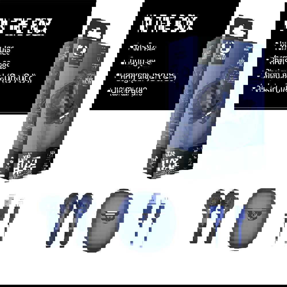 These Twins Blaze earphones have an attractive and stylish design with 12mm drivers. Enjoy your music everywhere and because they are IPX4 Splash water resistant, you can listen to your music in a rain shower without any problems. These Twins have a playtime of 7 hours / 32 hours total including charging box time and provide clear telephone conversations thanks to the dual ENC microphones, which also eliminate wind noise. Moreover, the music is automatically paused when you remove the earbuds from your ear. This impressive combination of style, functionality and long battery life makes these earphones a real all-rounder. Compatible with iOS & Android, Windows & MacOS