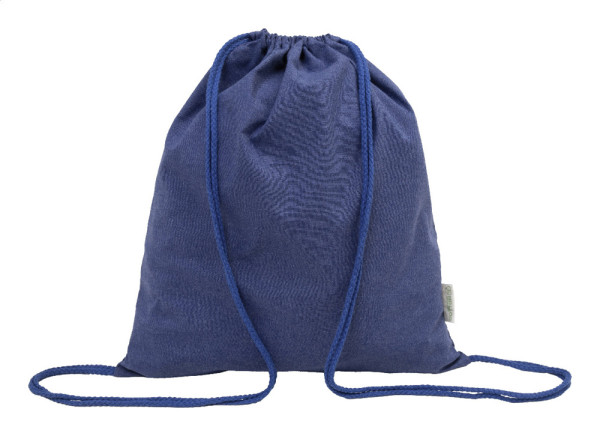 Drawstring bag in 70% recycled cotton and 30% RPET polyester, 140 g/m². With distinctive recycled cotton label.