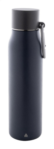 Double-wall, recycled stainless steel vacuum insulated bottle with PP lid and recycled aluminium carabiner. 500 ml.