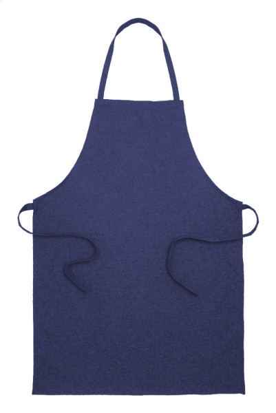 Kitchen apron in 70% recycled cotton and 30% RPET polyester, 180 g/m². With distinctive recycled cotton label.