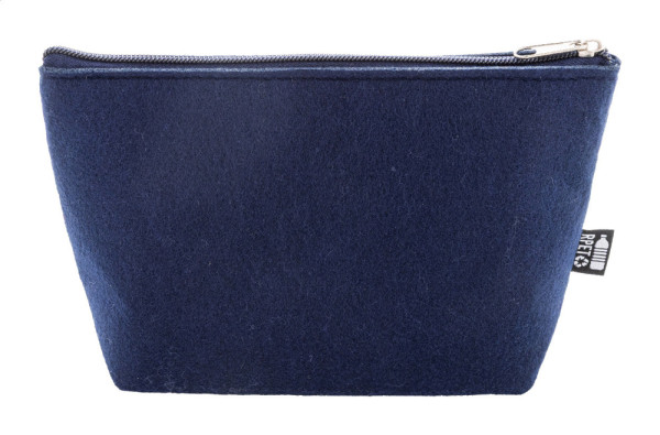 Zipped RPET felt cosmetic bag. With distinctive RPET label.