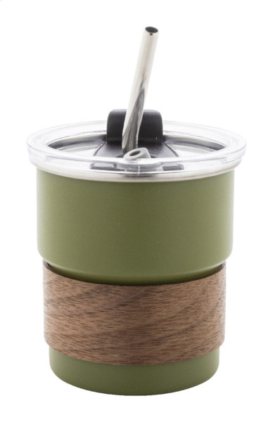 Single-wall, recycled stainless steel travel cup with walnut wood grip, plastic drinking lid and... more