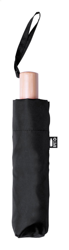 Manual, windproof folding umbrella with 8 panels in matching colour pouch. With metal frame, fibreglass ribs and wooden handle. 190T RPET pongee. With distinctive RPET label.