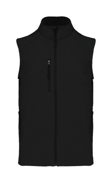 Triple-layer, breathable, wind and waterproof zipped softshell bodywarmer vest with zipped chest and side pockets. With breathable mid layer and micro polar fleece inner layer. 95% polyester and 5% elastane, 300 g/m². Kariban brand product.
