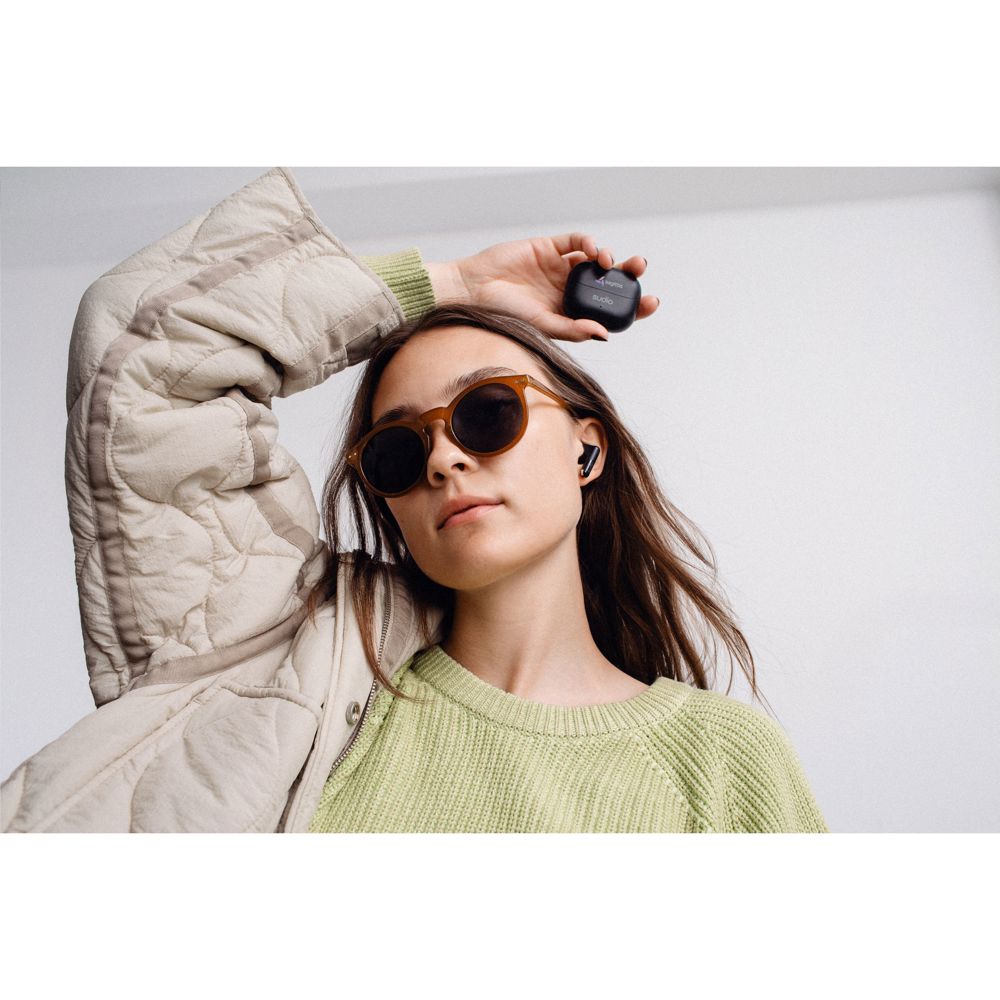 The Sudio D1 earbuds give you your daily dose of joy. With charging case. Up to 30 hours playtime. Sweat and splash proof, these earbuds have got you covered rain or shine. Take these buds to the gym or for a stroll in any weather. These earbuds fit snug to your ears. Both the buds and the case are a combination of matte black with glossy detailing, making you stand out just enough. Made from Recycled Plastics. Enjoy a stable Bluetooth 5.4 connetion. A sustainable choice that doesn't compromise on style or sound. In a a plastic-free packaging that uses FSC-certified paper and soy ink. Includes a USB-C charging cable, 4 optional silicone eartip sizes and a user manual. Swedish design, music to your ears. Each piece in a luxury gift box.