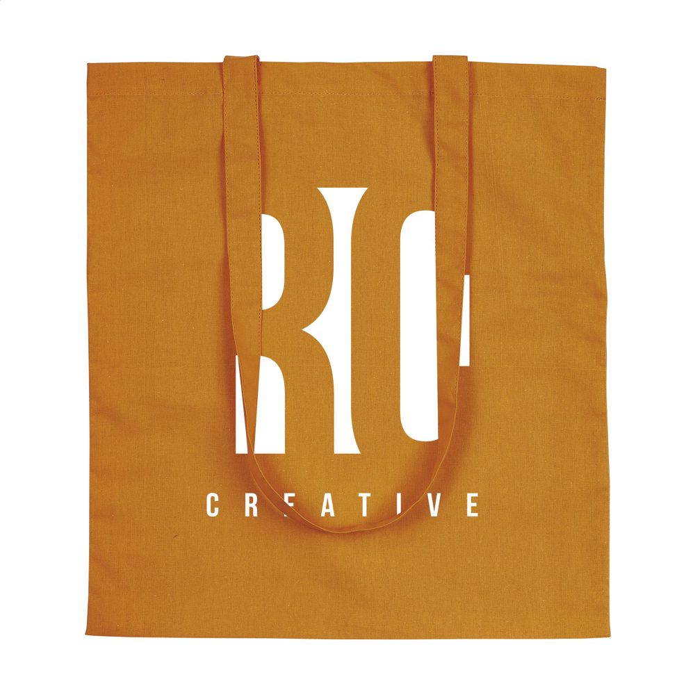 Quality shopping bag with long handles, made from 100% woven cotton (120 g/m²). Capacity approx. 8 litres.