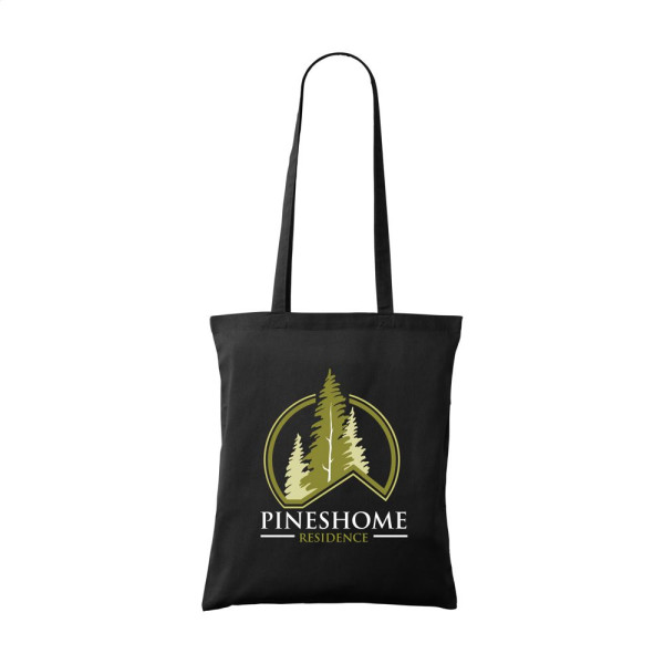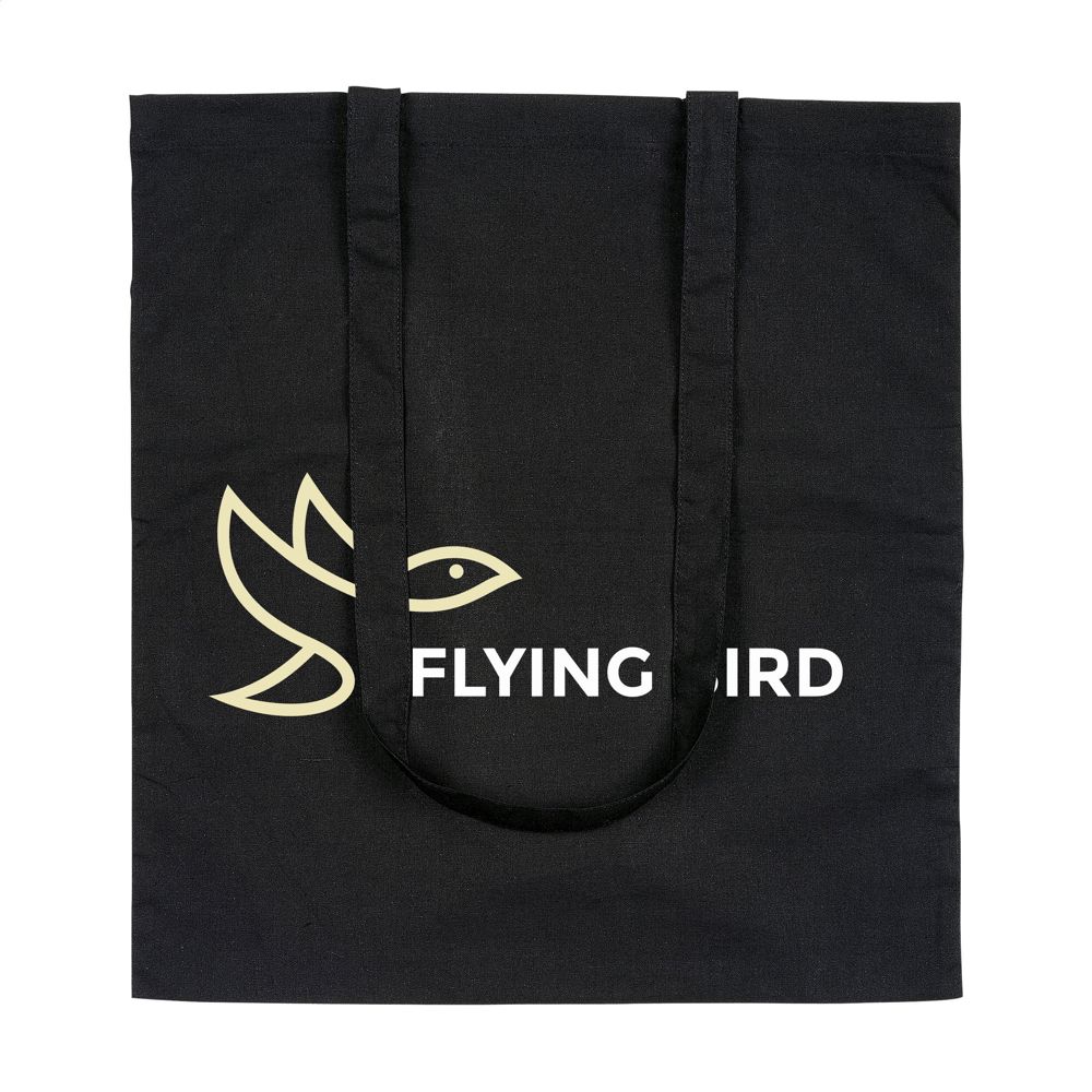 Quality shopping bag with long handles, made from 100% woven cotton (120 g/m²). Capacity approx. 8 litres.