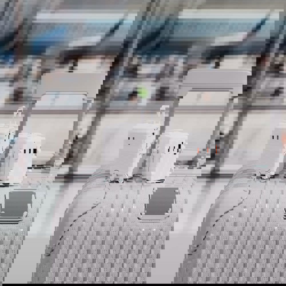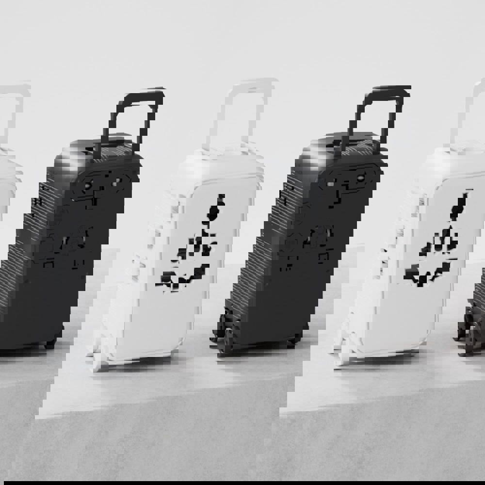 Discover the Xoopar Luggie, the stylish suitcase-shaped world adapter. Made from 65% recycled plastic and compatible with over 150 countries (EU, UK, US, AUS). Equipped with two 25W USB-C ports (which enable fast charging) and a 18W USB-A port, it allows you to charge multiple devices simultaneously. Its push-button system makes changing plugs simple and seamless.