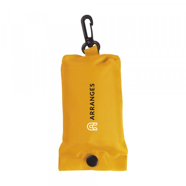 Foldable shopping bag made from 190T polyester. With pouch with a press stud and carabiner. The bag is delivered unfolded with a separate pouch. Meas. folded 6 x 2,5 x 12,5 cm. Capacity approx. 8 litres.
