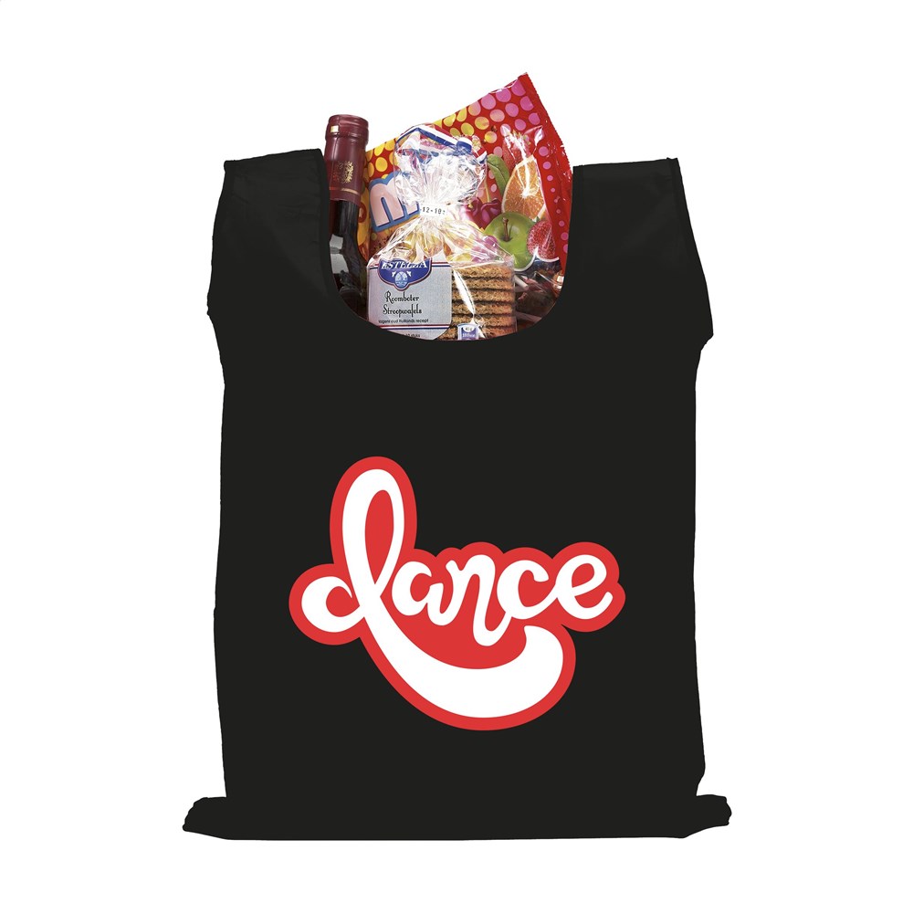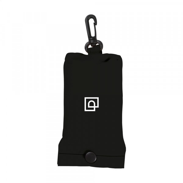 Foldable shopping bag made from 190T polyester. With pouch with a press stud and carabiner. The bag is delivered unfolded with a separate pouch. Meas. folded 6 x 2,5 x 12,5 cm. Capacity approx. 8 litres.