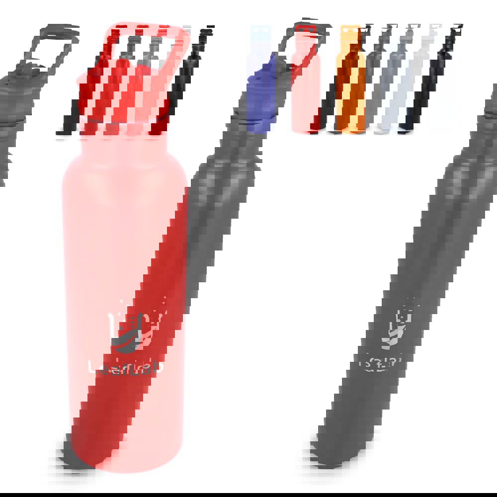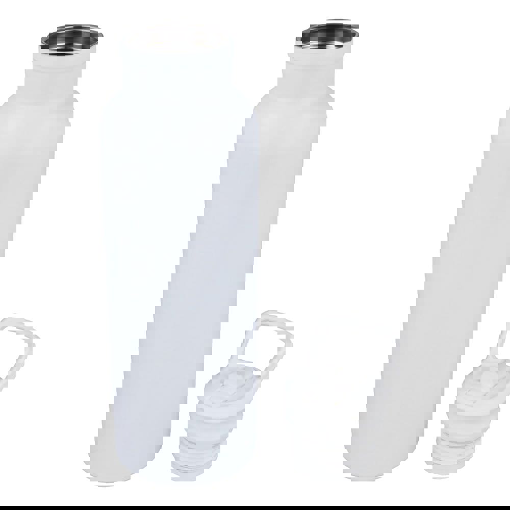 Vacuum insulated thermo bottle with a matt finish. Your drinks stay cold for 24 hours and hot for 8 hours. The cap has a straw lid and a handle for easy carry. Each packed in giftbox.