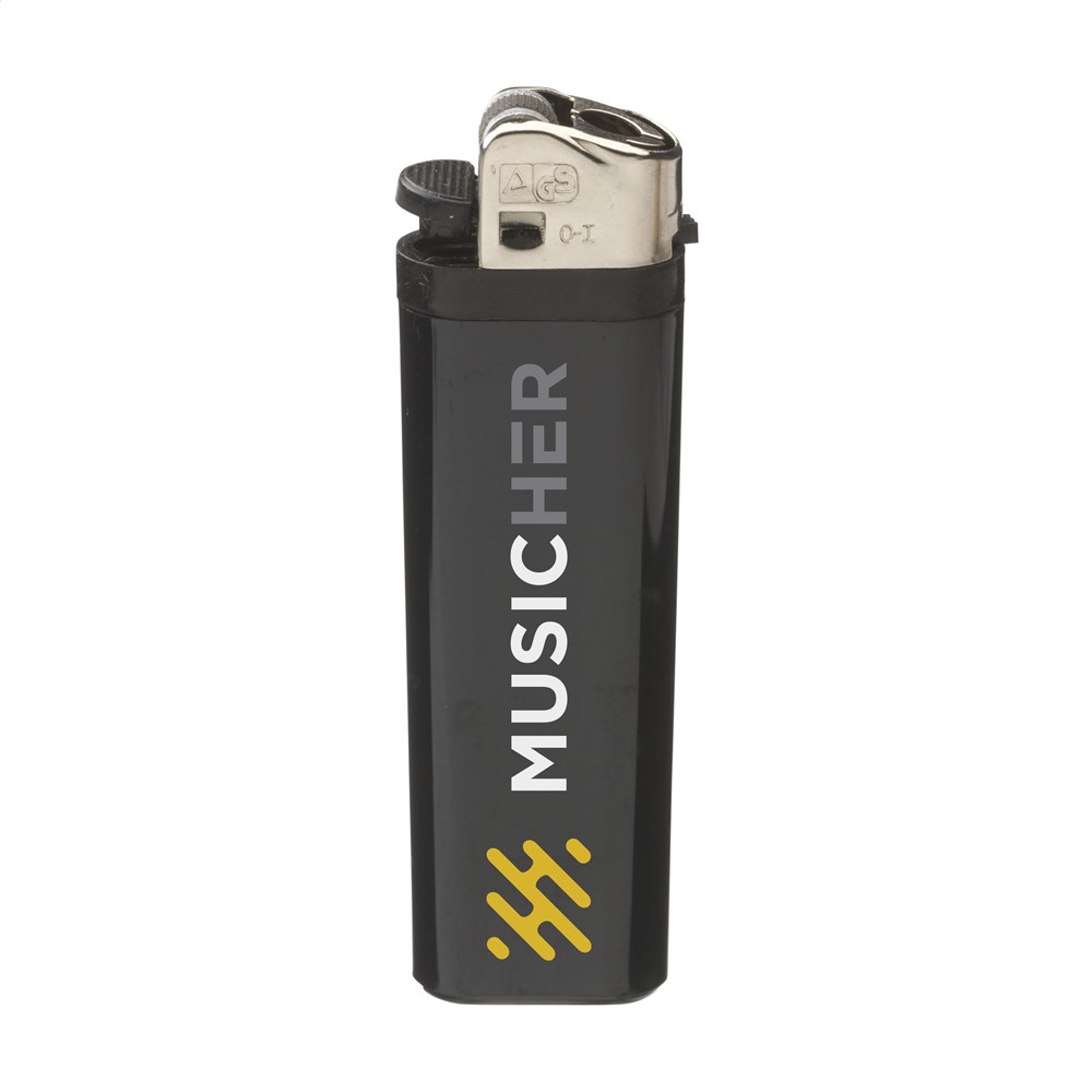 High quality lighter from the brand Flameclub®, with an adjustable flame. Equipped with child lock. Equipped with child lock. NEN-certified: EN13869. TÜV-certified and ISO-certified: ISO9994. Lighter are only supplied with print.