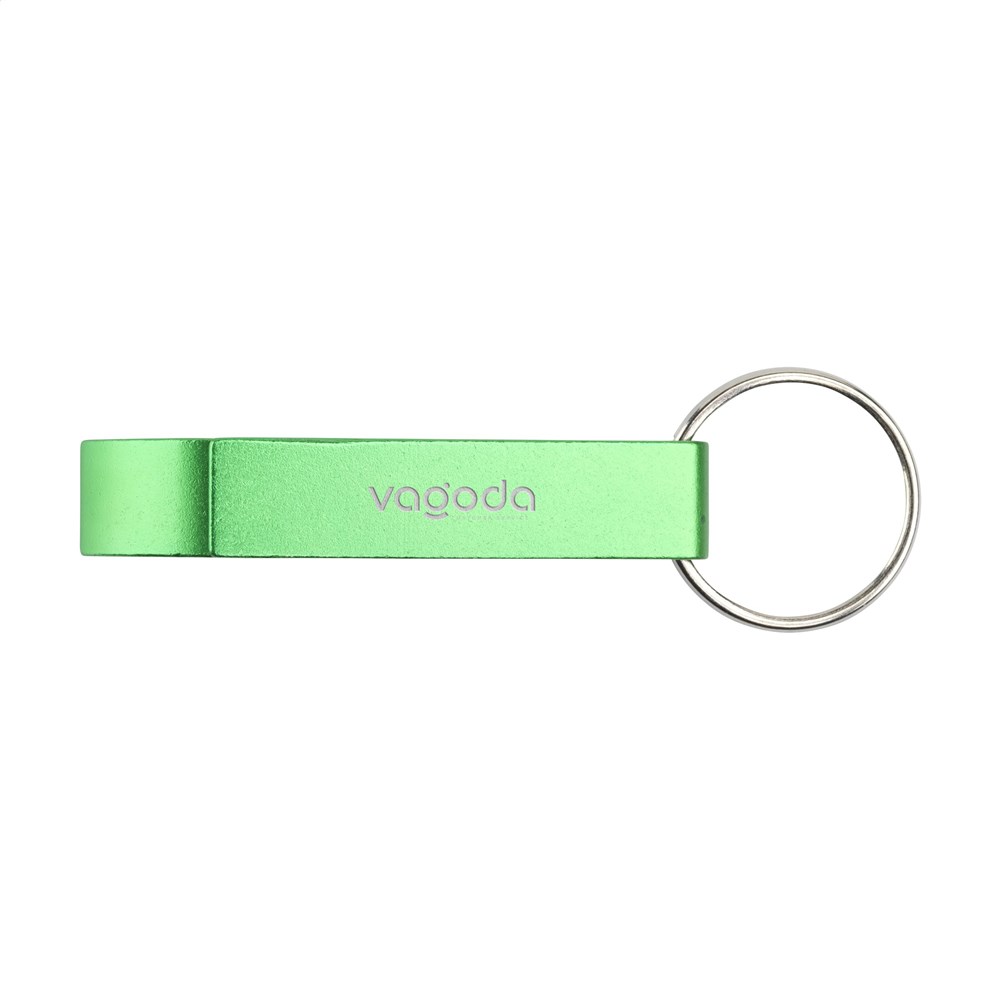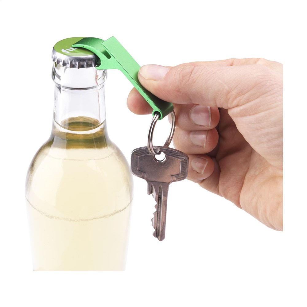 Lightweight opener made from recycled aluminium, with keyring. GRS-certificated. Total recycled material 79%. By using recycled aluminium, fewer new raw materials are used during the production of this product. This means less energy consumption and less use of water.