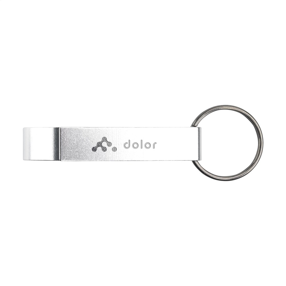 Lightweight opener made from recycled aluminium, with keyring. GRS-certificated. Total recycled material 79%. By using recycled aluminium, fewer new raw materials are used during the production of this product. This means less energy consumption and less use of water.