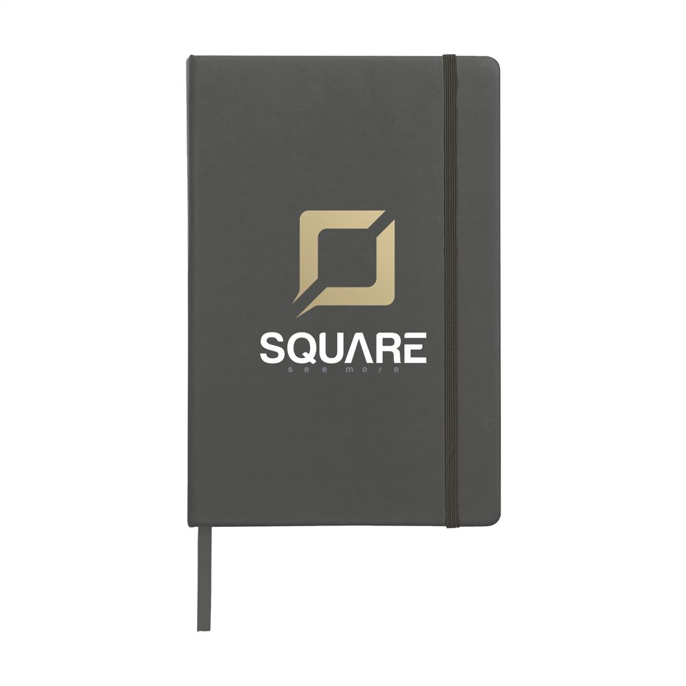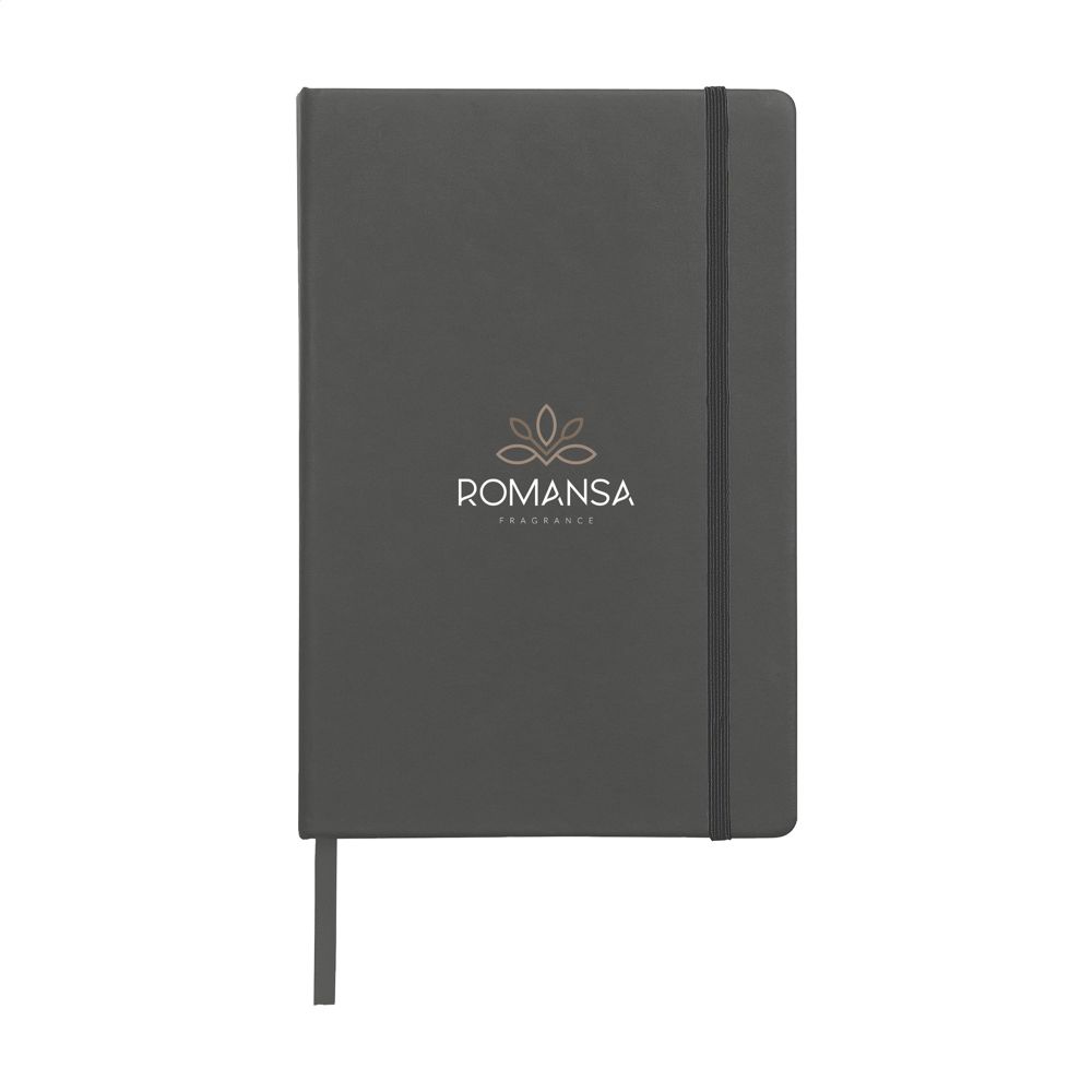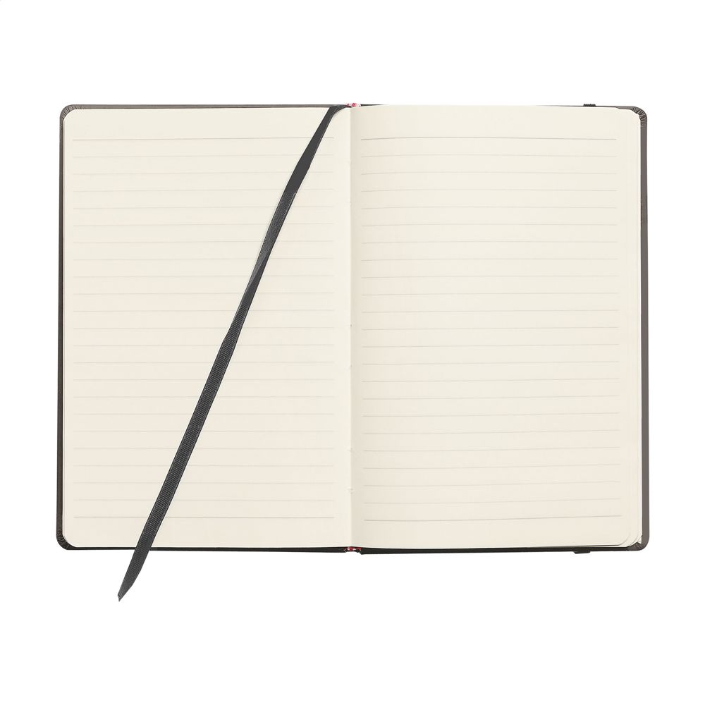 Notebook in A5 format with approx. 96 sheets/192 pages pages of cream coloured, lined FSC Mix certified paper (80 g/m²). With a bound spine, hard cover, elastic fastener and silk ribbon.