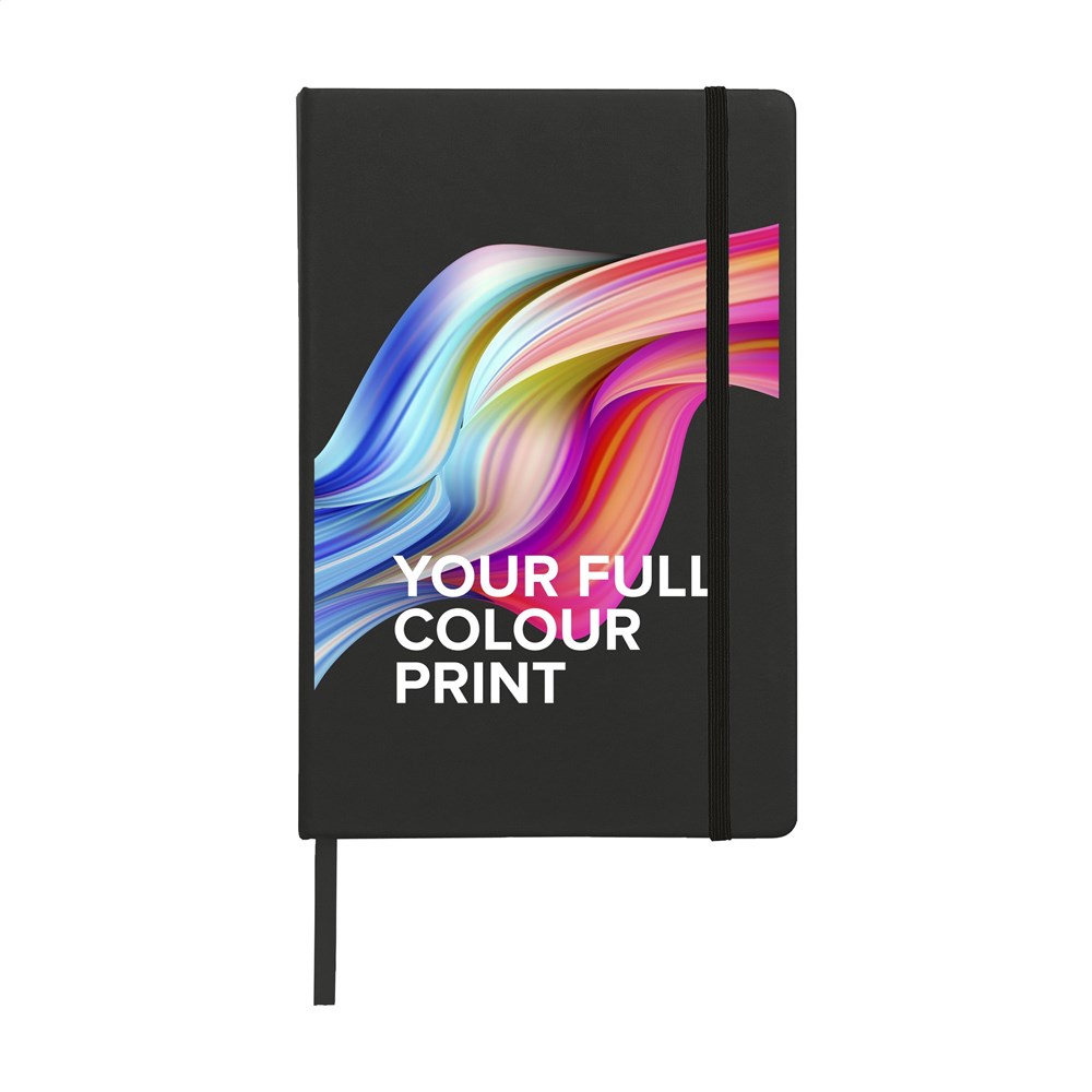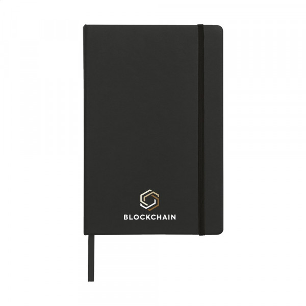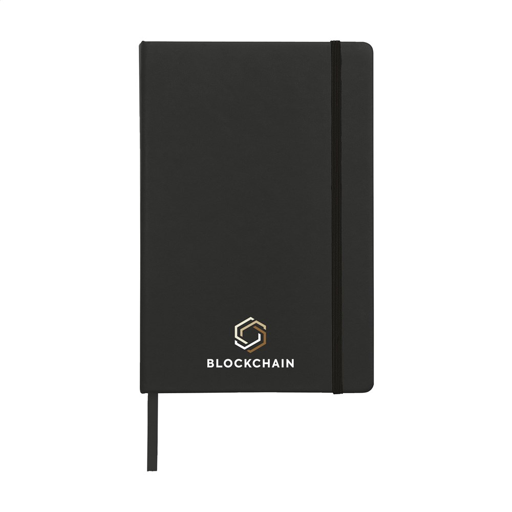 Notebook in A5 format with approx. 96 sheets/192 pages pages of cream coloured, lined FSC Mix certified paper (80 g/m²). With a bound spine, hard cover, elastic fastener and silk ribbon.