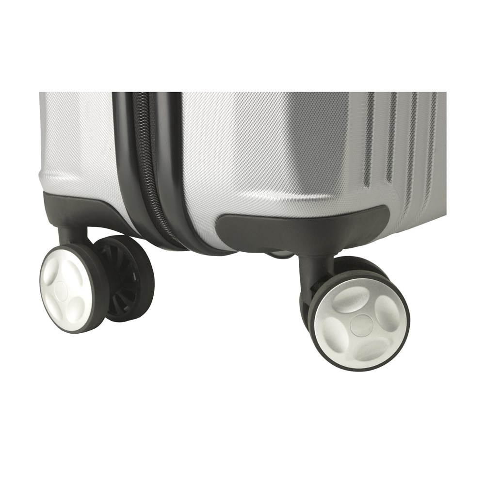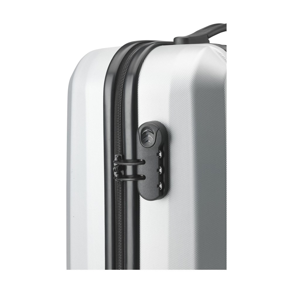 Trendy, lightweight trolley case made from 100% ABS with a metallic look. With spacious main compartment, four dual wheels, extandable handle and lock. Capacity approx. 35 litres.