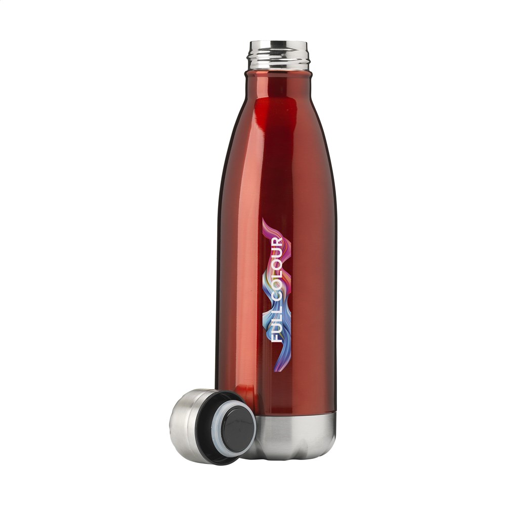 Double walled, vacuum-insulated, stainless steel water bottle/thermo bottle. With leak proof screw cap. Made in metallic or with beautiful top layer in matt finish (only the black one and the white one). Suitable for maintaining the temperature of cold or hot water. Not dishwasher-safe. Capacity 500 ml. Packed individually.