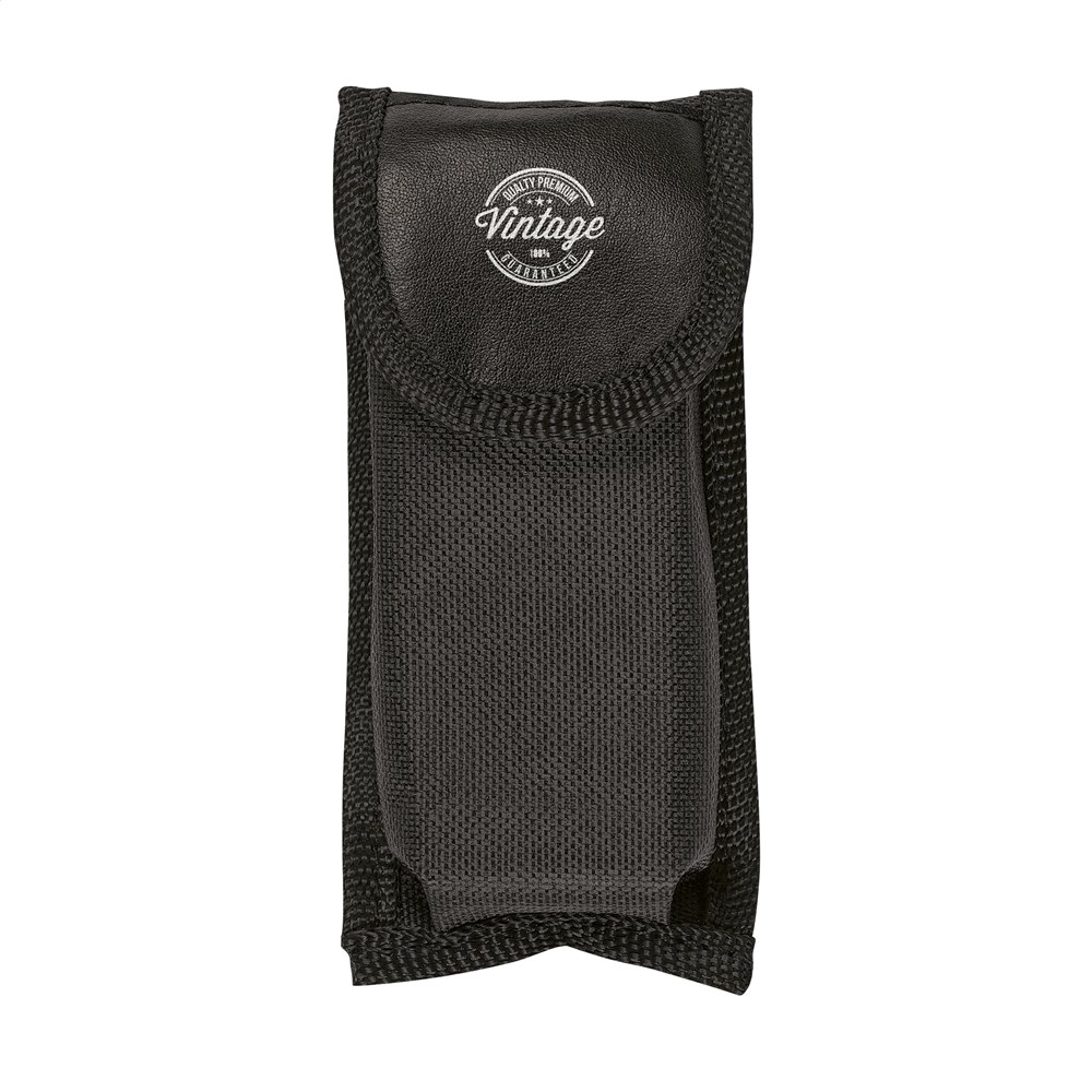 Compact stainless steel multi tool with aluminium hand grip and metallic look. 9-pieces with 13 functions: tongs, wire cutter, 3 screwdrivers, reamer, file, can opener, cap lifter, fish scraper, hook removal tool, knife and phillips screwdriver. With lock. In a nylon case. Please note local rules may apply regarding the possession and/or carrying of knives or multitools in public. Each item is supplied in an individual brown cardboard box.