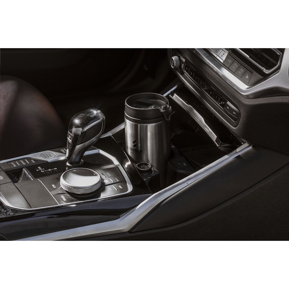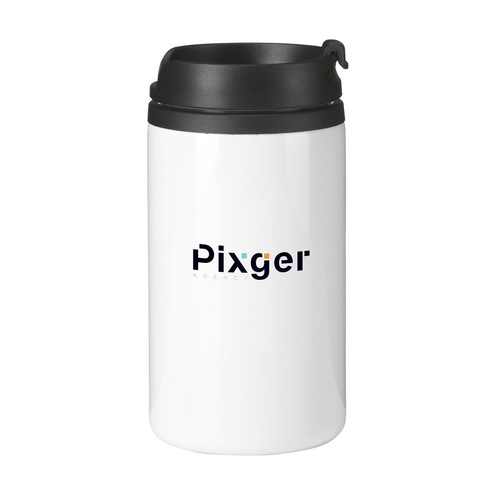 Double-walled thermos cup made from recycled stainless steel. With a plastic inner wall, screw lid and click-opening. Non-slip bottom. Not dishwasher-safe. RCS-certified. Total recycled material: 48%. Capacity 300 ml. Stainless steel can be recycled many times whilst retaining the quality of the material. By using recycled stainless steel, fewer new raw materials are needed. This means less energy consumption and less use of water. A responsible choice. Packed individually.
