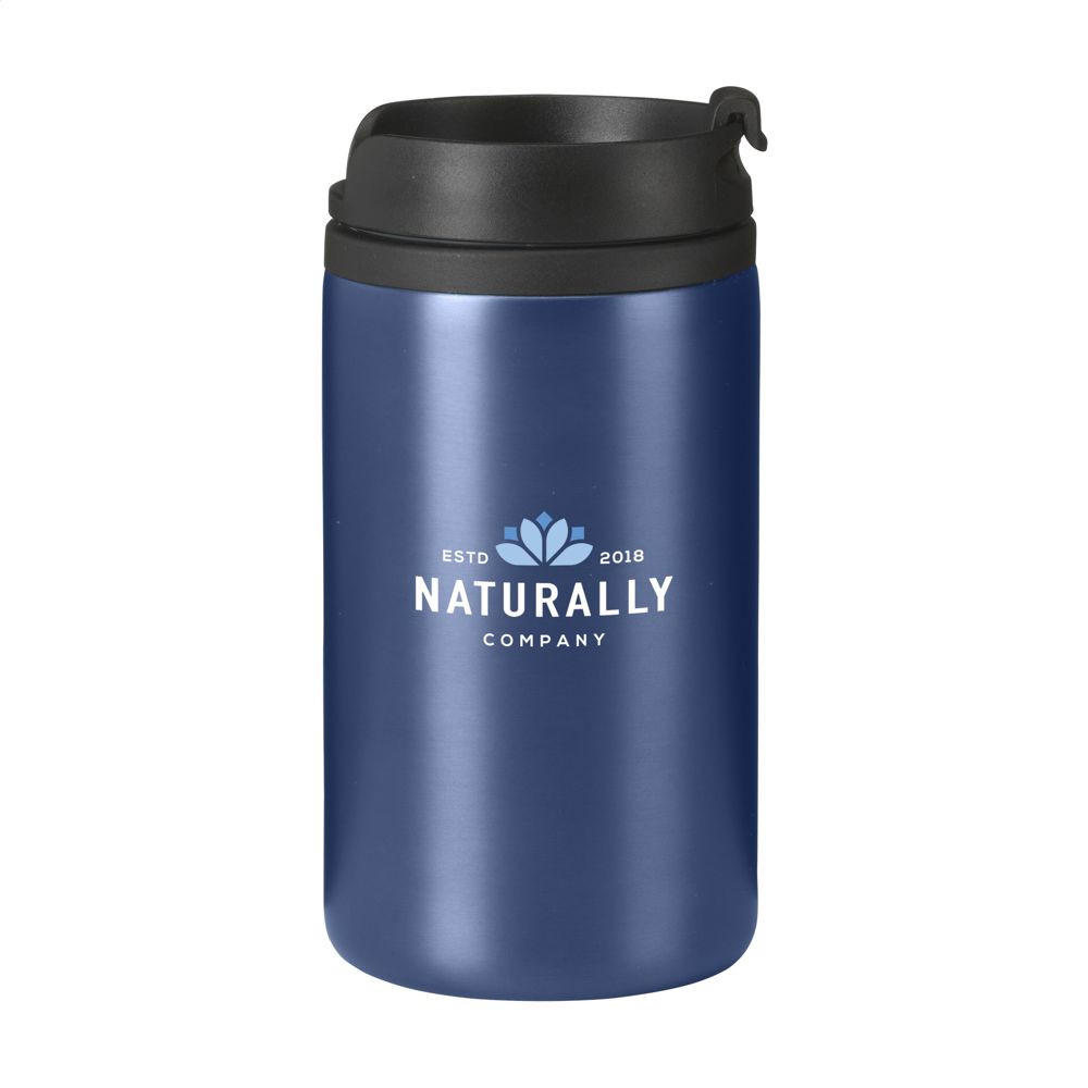 Double-walled thermos cup made from recycled stainless steel. With a plastic inner wall, screw lid and click-opening. Non-slip bottom. Not dishwasher-safe. RCS-certified. Total recycled material: 48%. Capacity 300 ml. Stainless steel can be recycled many times whilst retaining the quality of the material. By using recycled stainless steel, fewer new raw materials are needed. This means less energy consumption and less use of water. A responsible choice. Packed individually.