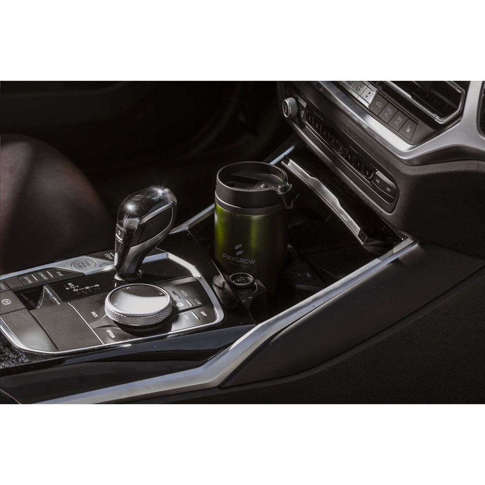 Double-walled thermos cup made from recycled stainless steel. With a plastic inner wall, screw lid and click-opening. Non-slip bottom. Not dishwasher-safe. RCS-certified. Total recycled material: 48%. Capacity 300 ml. Stainless steel can be recycled many times whilst retaining the quality of the material. By using recycled stainless steel, fewer new raw materials are needed. This means less energy consumption and less use of water. A responsible choice. Packed individually.