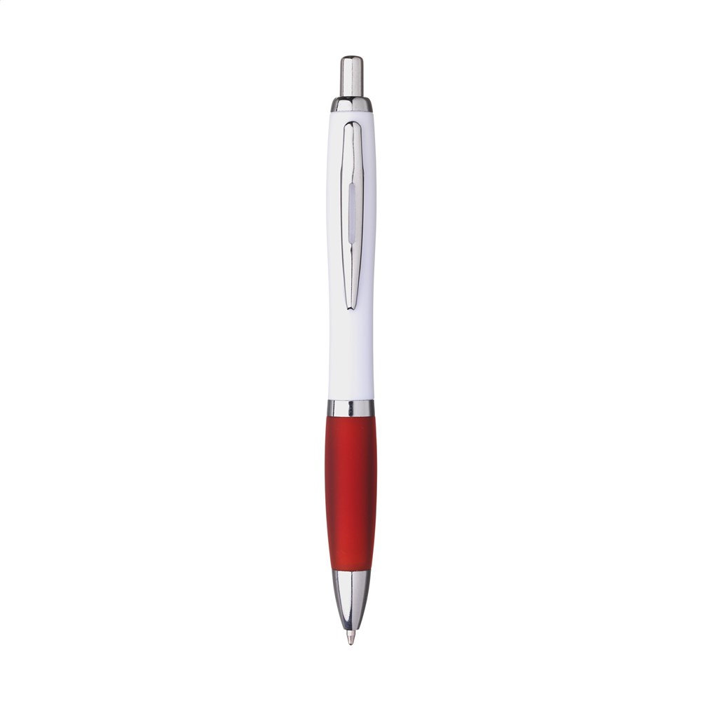 Blue ink ballpoint pen. The transparent coloured holder is made from recycled ABS. With push... more