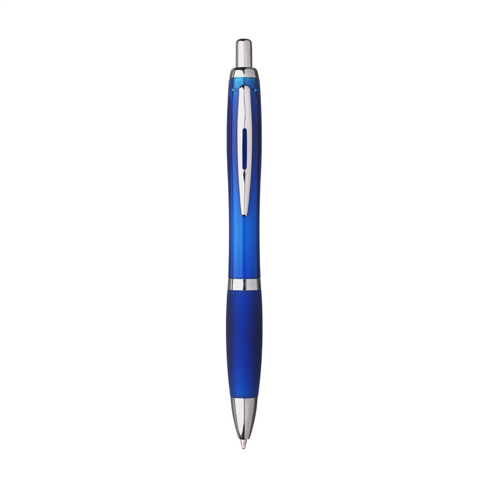 Blue ink ballpoint pen. The solid holder is made from recycled ABS. With push button, metal clip... more