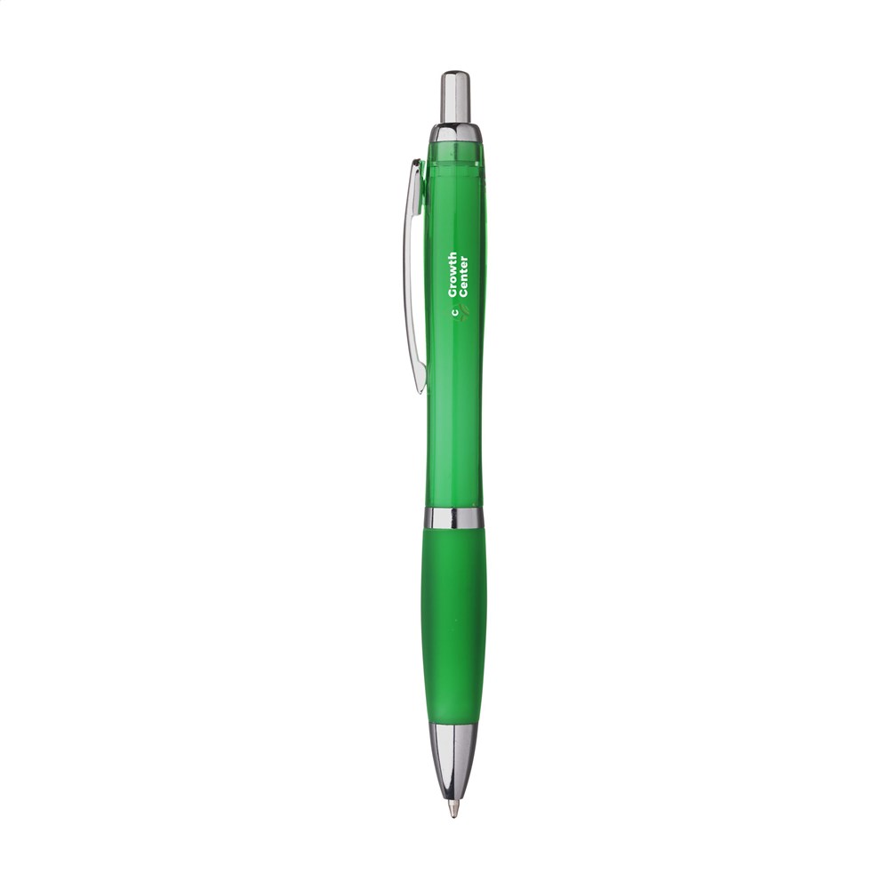 Blue ink ballpoint pen. The solid holder is made from recycled ABS. With push button, metal clip... more