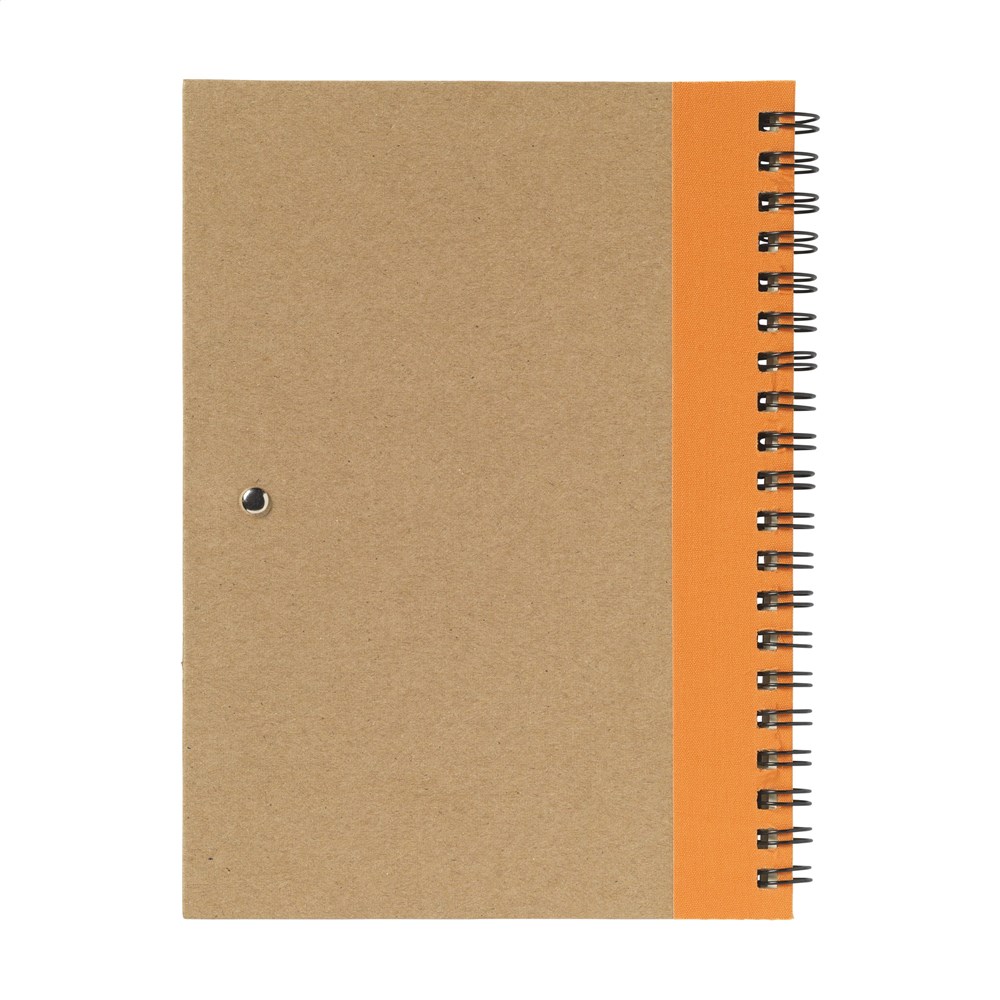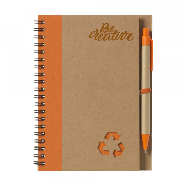 Notebook made from recycled material with approx. 70 sheets/140 pages of cream-coloured, lined paper (70 g/m²) and cardboard cover. Bound with a strong metal wire-o-binding. Incl. blue ink ballpoint. FSC Mix certified.