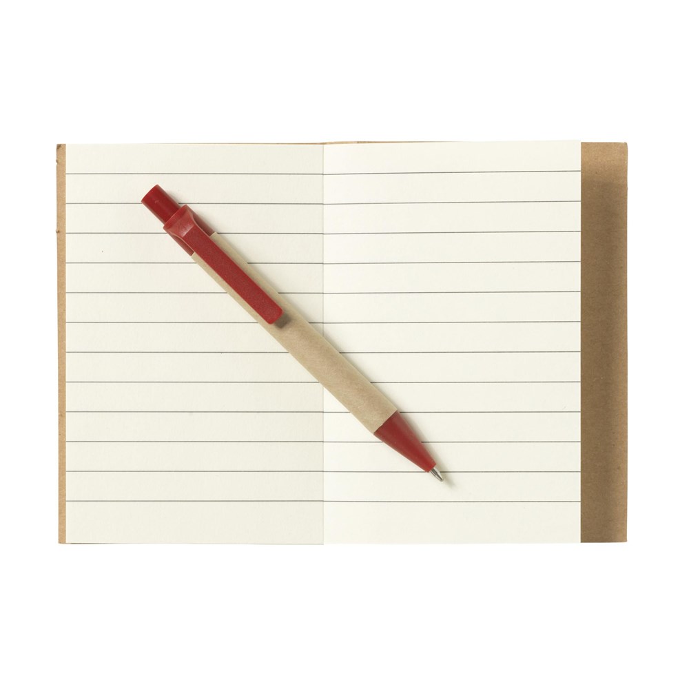Mini notebook made from recycled materials, with approx. 80 sheets of cream-coloured, lined paper (70 g/m²) and cardboard cover. Incl. blue ink ballpoint pen. FSC Mix certified.