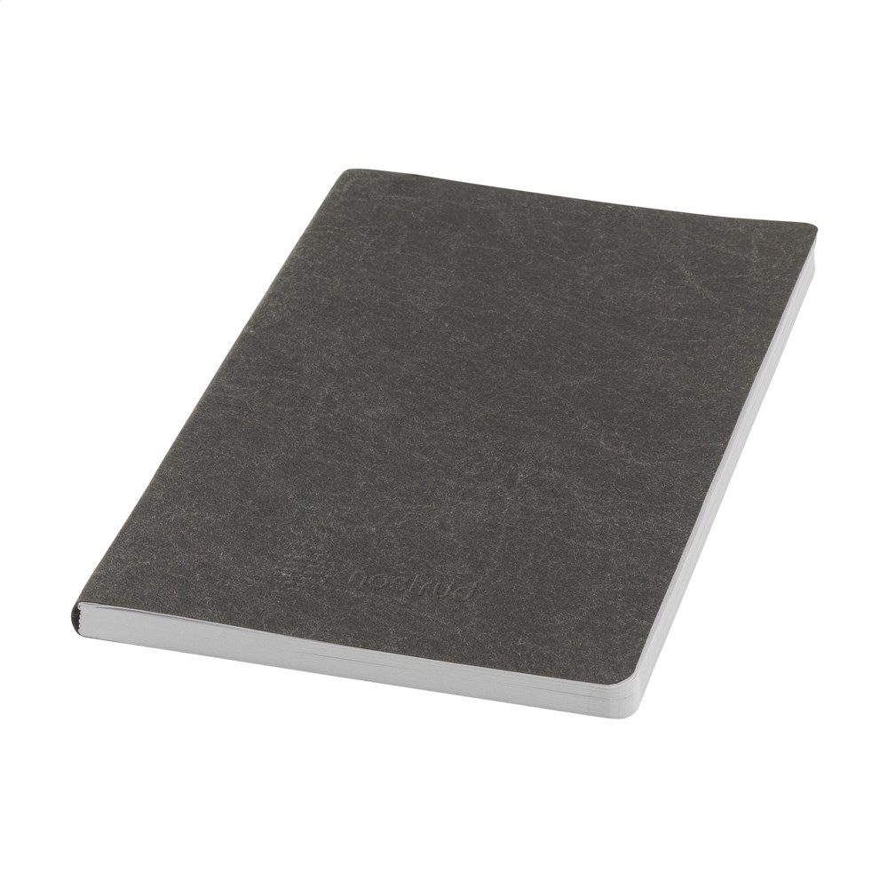 Recycled notebook in A5 format with a washable kraft cover. The cover is made from natural cellulose fibers in combination with rubber. Washable kraft has the luxurious look & feel of soft leather but is lighter in weight. The material becomes more flexible the more it is used. The notebook has approx. 96 sheets/192 pages of white, lined, recycled GRS-certified paper (70 g/m²) and a bound spine. GRS certified. Total recycled material: 97%.