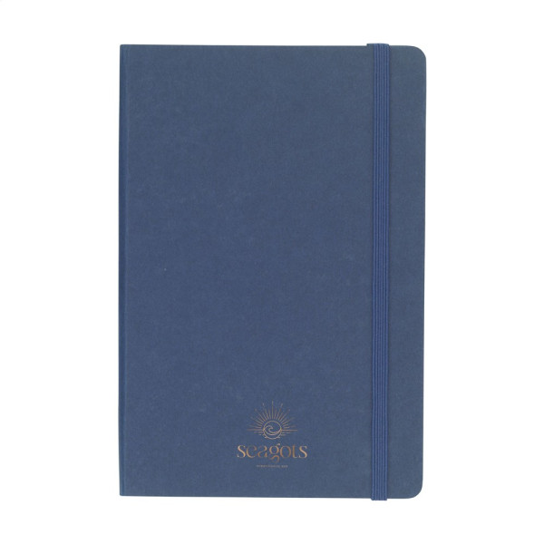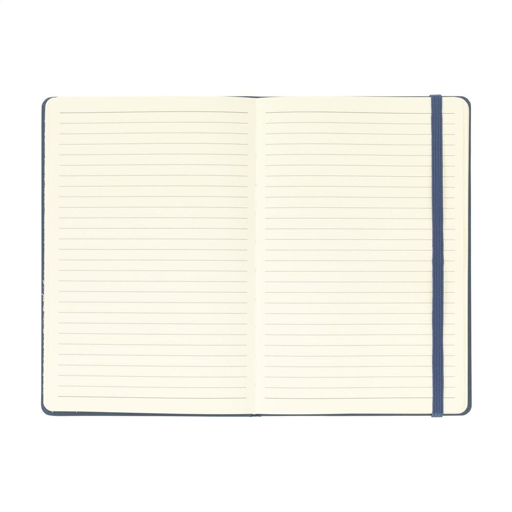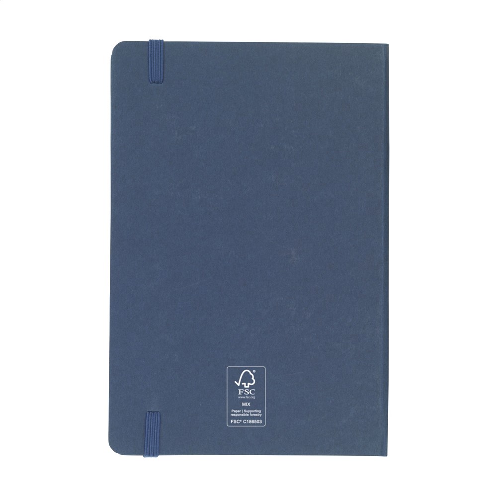 A5 notebook with a cover made from FSC Mix certified cardboard. The notebook has approx. 80 sheets/160 pages of cream-coloured, lined, FSC Mix certified paper (70 g/m²). With tie binding and a handy closing elastic.