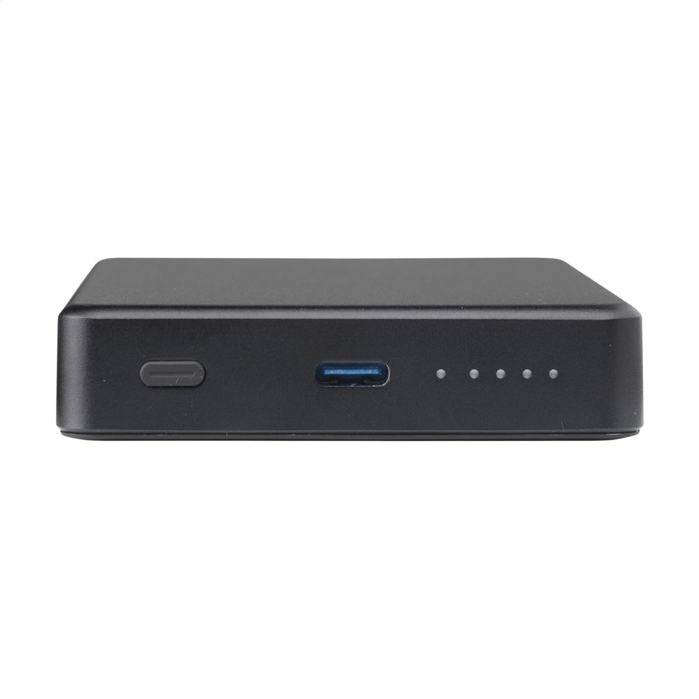 Ultra-light, powerful and wireless power bank with a built-in 10,000 mAh lithium polymer battery. For fast charging of a smartphone. The casing is made from 100% RCS-certified recycled aluminium. A handy size that fits easily in your pocket. USB-C input: 5V/3A 9V/2A. USB-C output: 5V/3.0A 9V/2.22A 12V/1.67A. Wired output: 20W. Wireless output: 15W with magnetic function (MagSafe). Just click your iPhone onto the magnet. The integrated magnets in the charger are perfectly aligned and always ensure the correct charging position of the iPhone. Compatible with iPhone 12 and higher. Equipped with indicator lights and on/off button. Includes rTPE USB-C/USB-C charging cable and user manual. Packed individually.