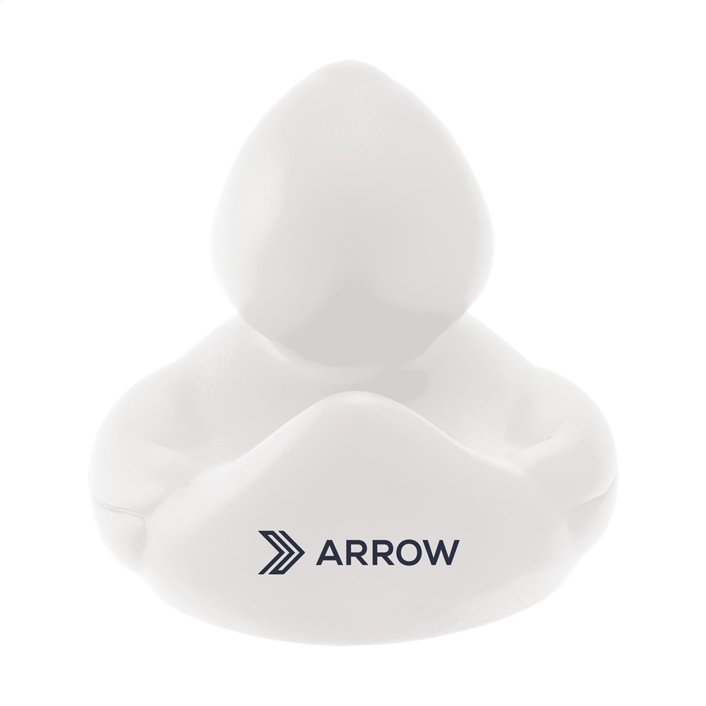 Rubber duck bath toy made of PVC.