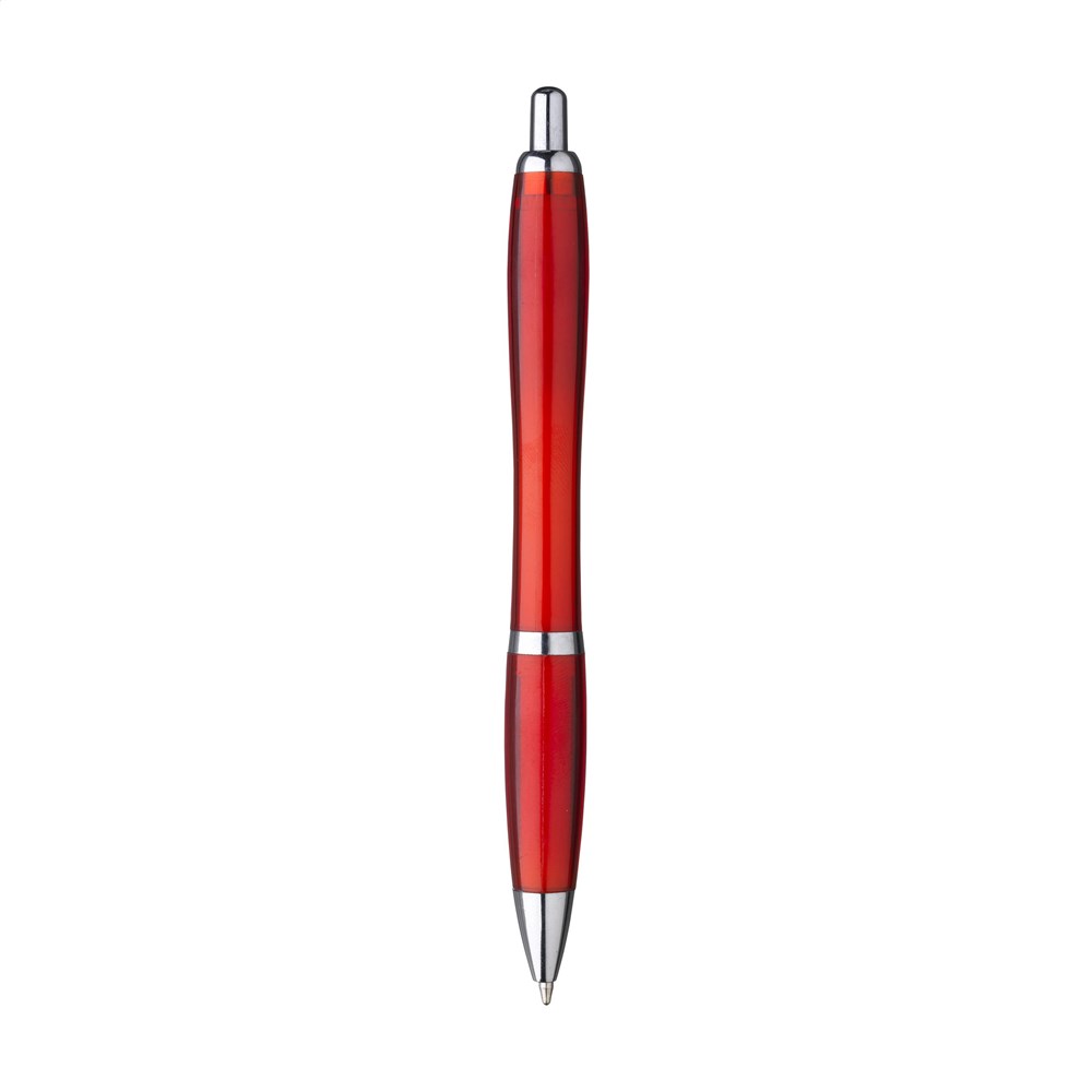 Blue ink ballpoint pen with transparent coloured barrel made from 100% recycled PET, high gloss... more