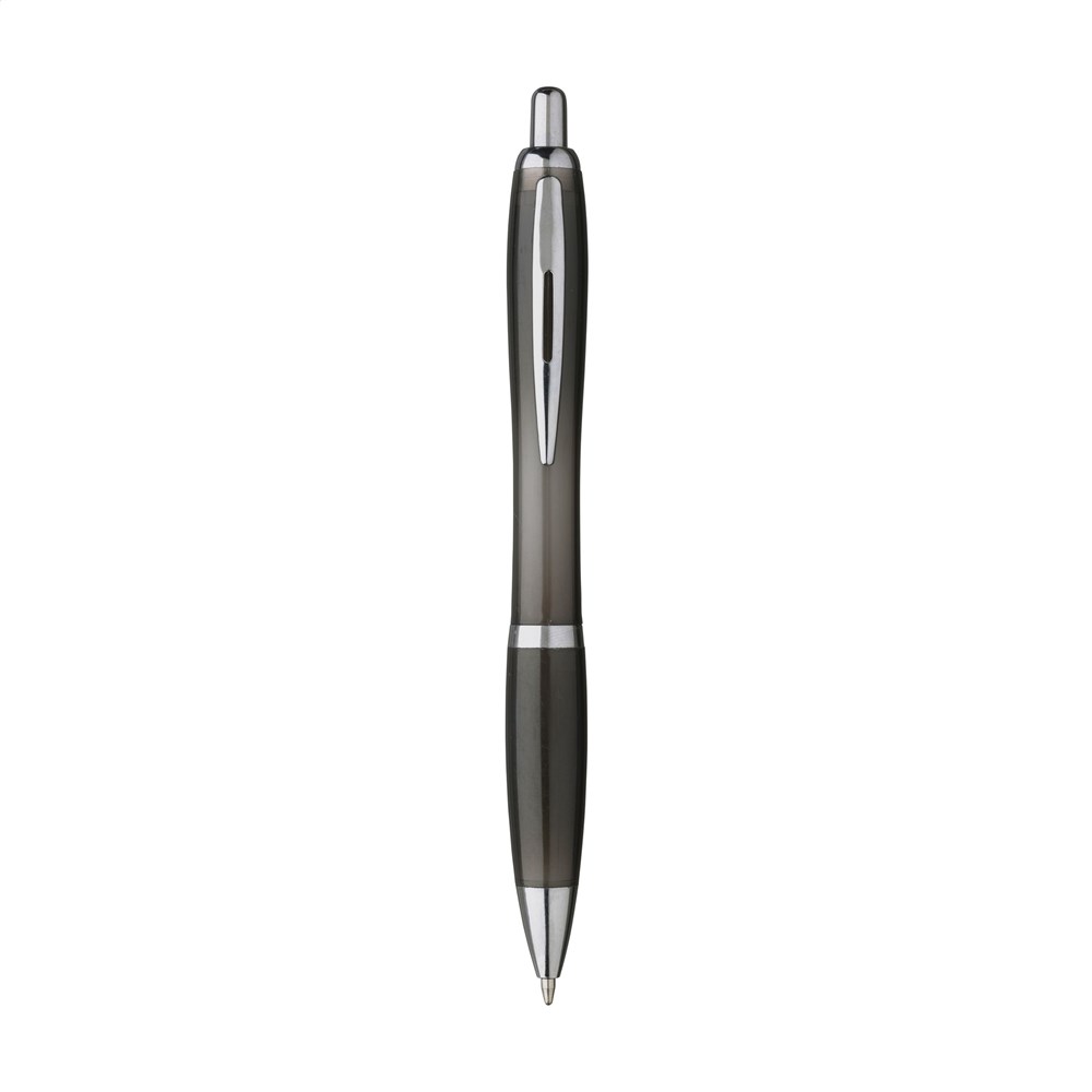 Blue ink ballpoint pen with transparent coloured barrel made from 100% recycled PET, high gloss... more