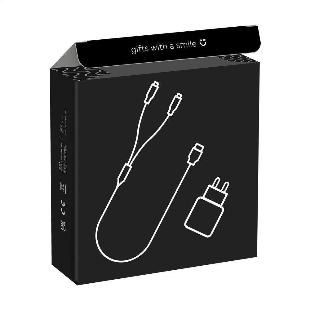 Charging set: Wall charger made from recycled PC. With 2 Type-C ports and a charging cable. The... more
