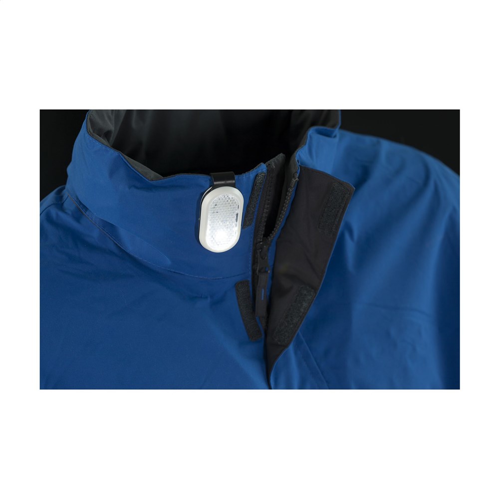 Reflector light with coloured clip. Two light settings: continuous bright white light or flashing... more