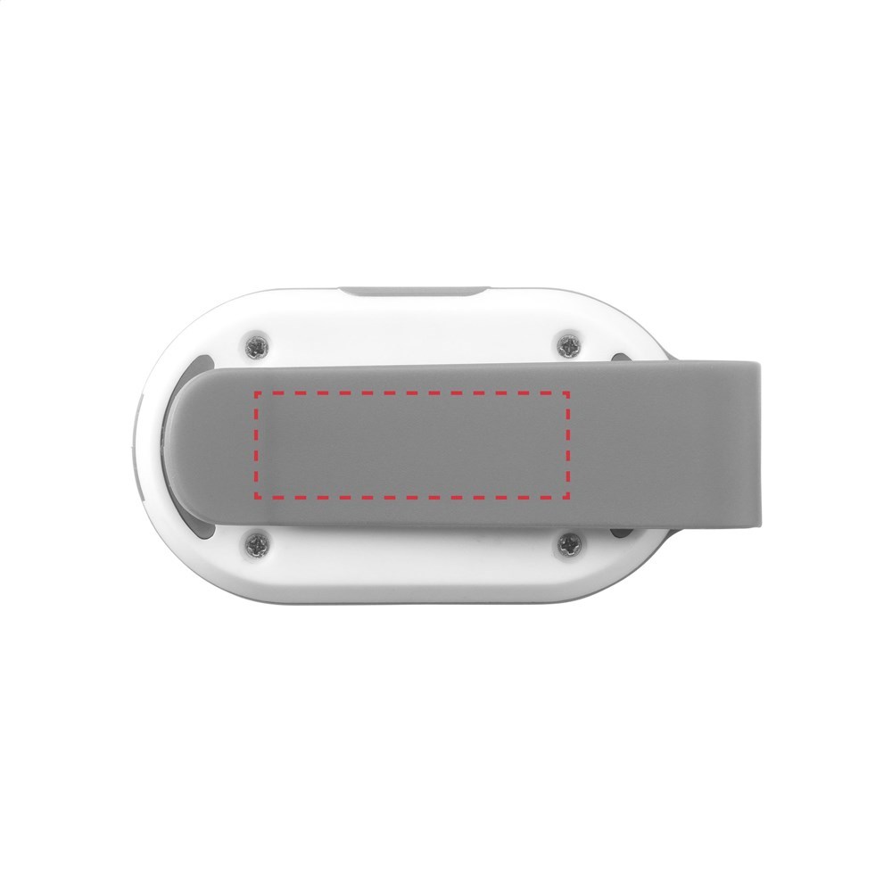 Reflector light with coloured clip. Two light settings: continuous bright white light or flashing red light. Incl. cell bateries.