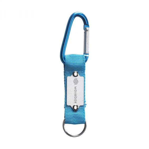 Carabiner hook with woven nylon strap and sturdy keyring.
