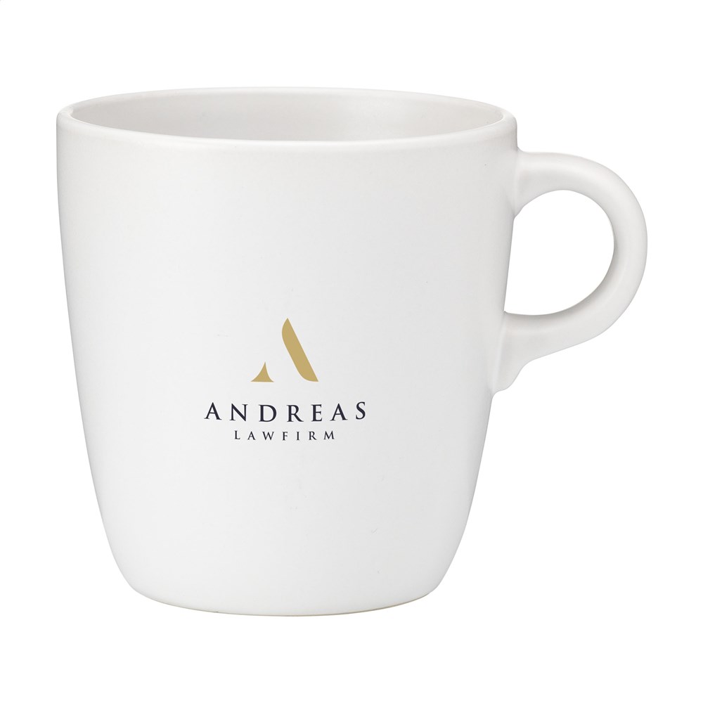 Mug with a simple, trendy design. Made from high-quality ceramic and provided with a matte coating inside and out. Capacity 375 ml. NOTE: The white mug cannot be laser engraved because it is not sufficiently visible.