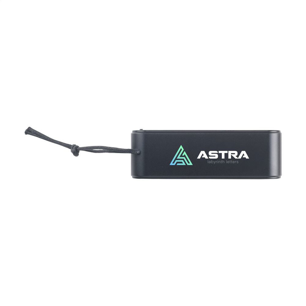 ireless Bluetooth speaker with a casing made from recycled aluminium and RPET plastic. A classic model with rounded corners. Bluetooth version 5.3. Once charged, the built-in 1200mAh lithium battery guarantees a playing time of up to 3.5 hours (at maximum volume). Wireless range up to 10 meters. Easy to operate and compatible with the most common smartphones and tablets. Output speaker: 2 x 5W. This speaker produces optimal sound. Includes USB-C/USB-C charging cable made from recycled TPE and user manual. RCS-certified. Total recycled material: 25%. Packed individually.