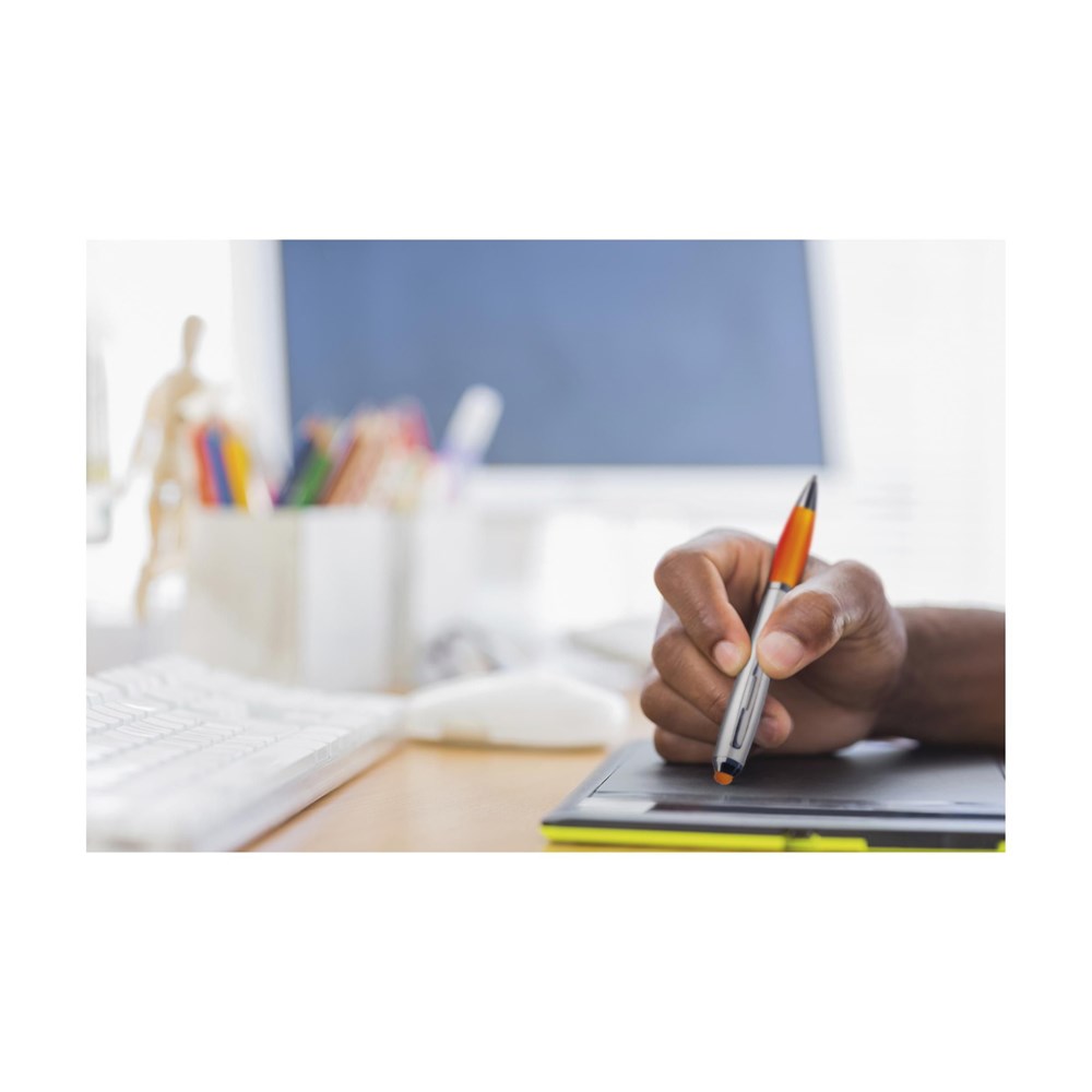 Blue ink ballpoint pen with coloured rubber top/pointer to operate touch screens (eg... more