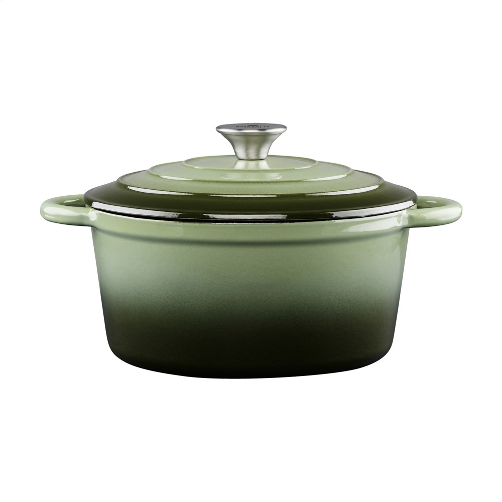Enameled, cast iron casserole with matching lid and stainless steel knob. The enameled cast iron ensures even heat distribution, ideal for preparing stews and slow-cooked dishes. Suitable for various heat sources such as ceramic, electric, induction, gas and oven. Dishwasher safe. A perfect combination of style and functionality. Capacity 3.8 litres. Each item is individually boxed.