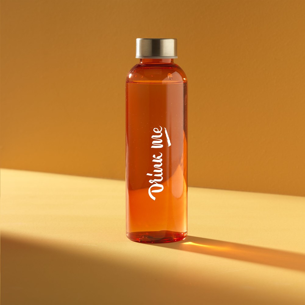 This water bottle is made from 100% RPET and has a stainless steel leak proof screw cap. With an attractive and slim design, it is particularly comfortable to hold. Not dishwasher-safe. Capacity 500 ml. RCS-certified. Total recycled material: 82%.